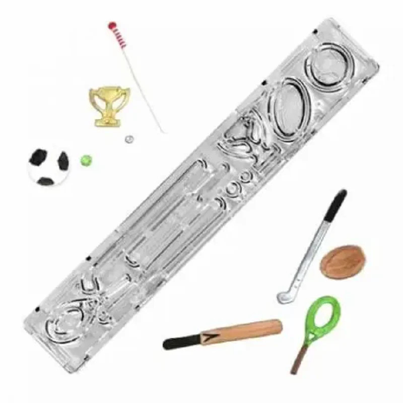 Contains Cricket Bat, Football, Golf club, Baseball Bat, Racket, Rugby Ball and Trophy